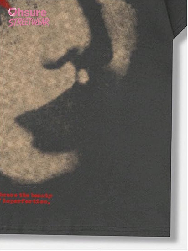 Trendy Graphic Design – Features a bold vintage-style print, short sleeves, classic crew neck, and distressed details for a cool, street-ready look.