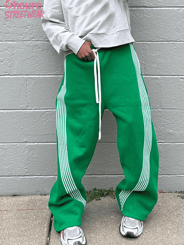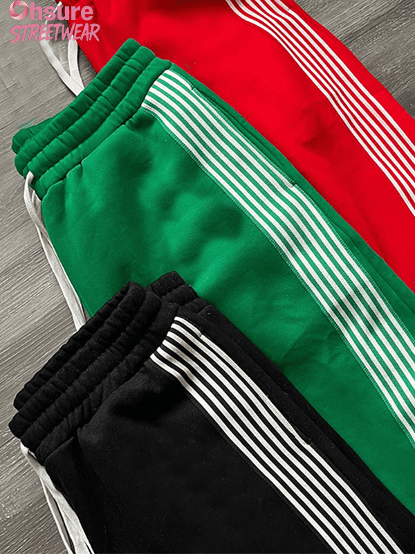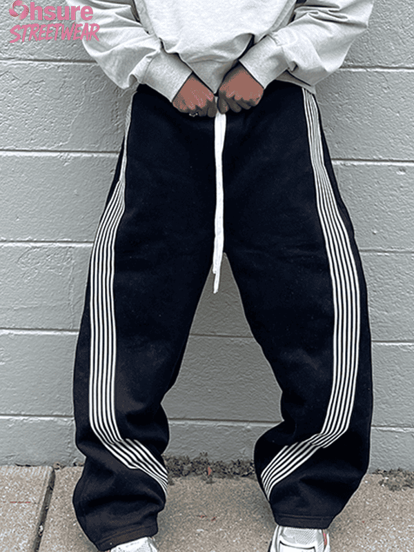 • Style: These sweatpants are designed with streetwear in mind, combining a modern, oversized fit with classic athletic stripes. The perfect choice for creating a casual yet stylish outfit, whether you’re lounging or out on the town.