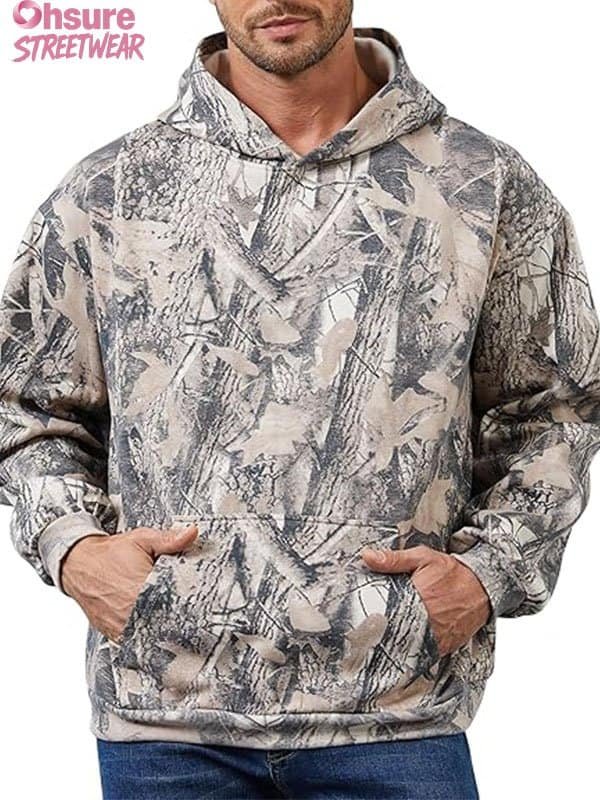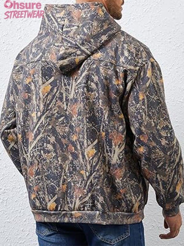 Custom Men’s Fleece Pullover Hoodie – Camo Streetwear with Pocket