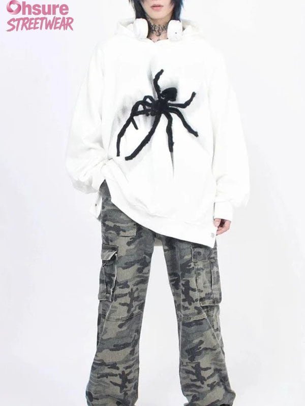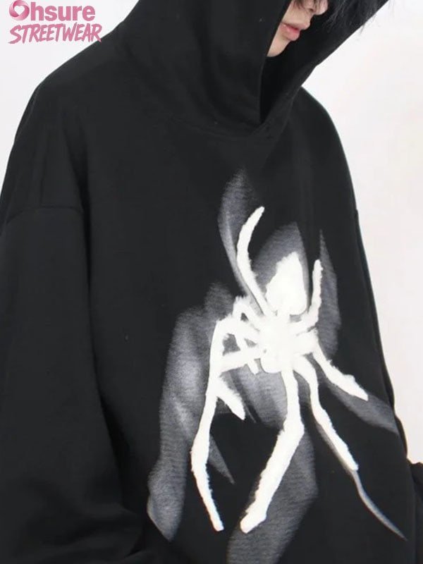 Custom Spider Graphic 100%cotton Hoodie – Distressed Vintage Streetwear Sweatshirt for Men