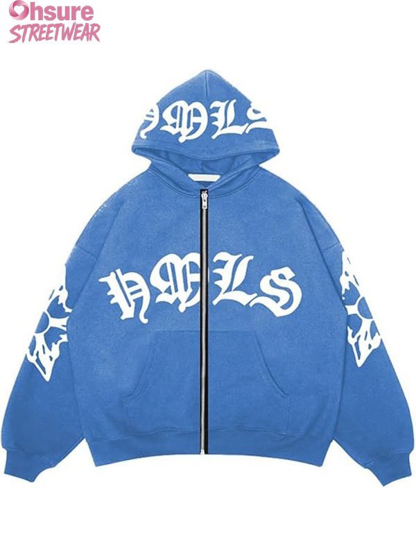 Streetwear Y2K Gothic Punk Zipper Hoodie – Casual Fashion Sweater 100%cotton for Men