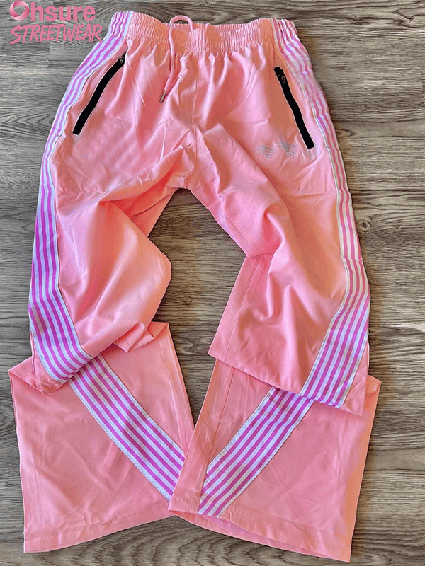 - Design: Featuring an oversized fit with a flared leg opening, these track pants are designed for a bold, streetwear look. The side stripes add a touch of sporty flair, while the drawstring waistband ensures a secure, adjustable fit.