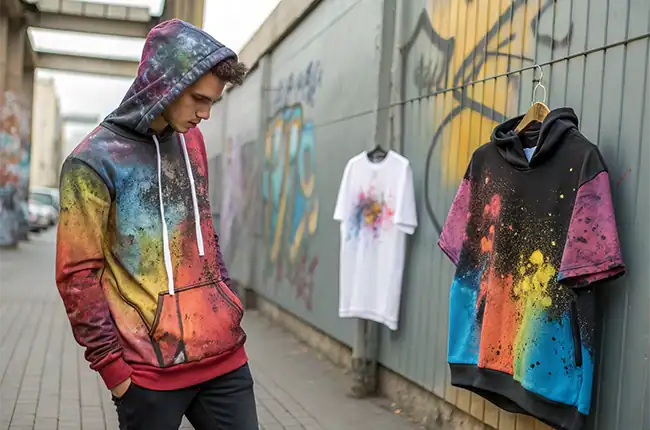 Graffiti designs can be combined with other effects like distressed finishes, tie-dye, or vintage washes. This creates authentic streetwear pieces that look like true urban originals.