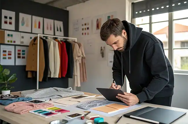• Extensive fabric library: cotton, fleece, French terry, performance blends, and sustainable options.